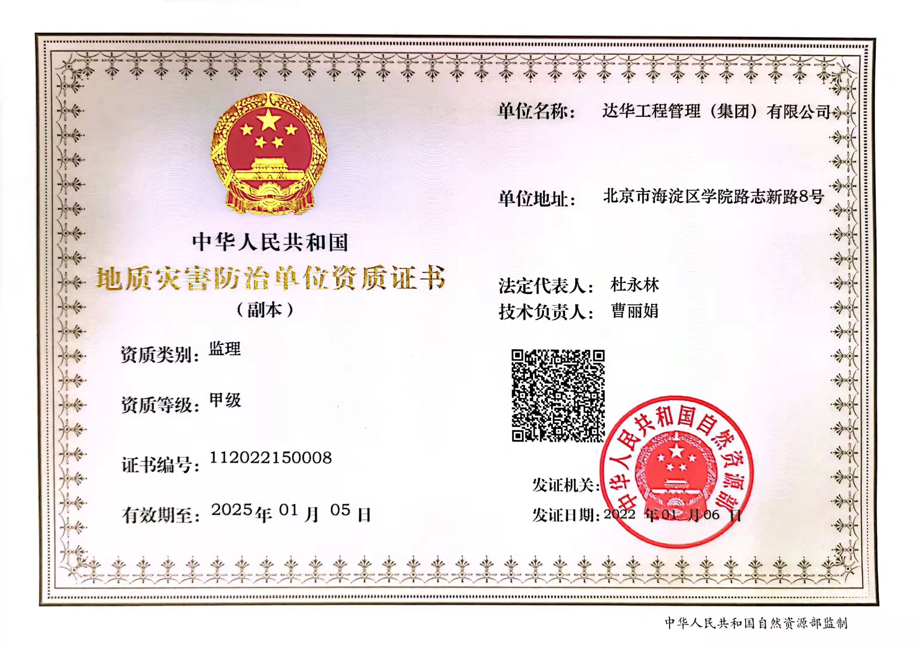 • 達(dá)華集團(tuán)榮獲中國(guó)自然資源部頒發(fā)的地質(zhì)災(zāi)害…